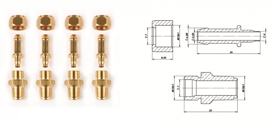 Комплект штуцеров впускного коллектора под пластиковый удлинитель