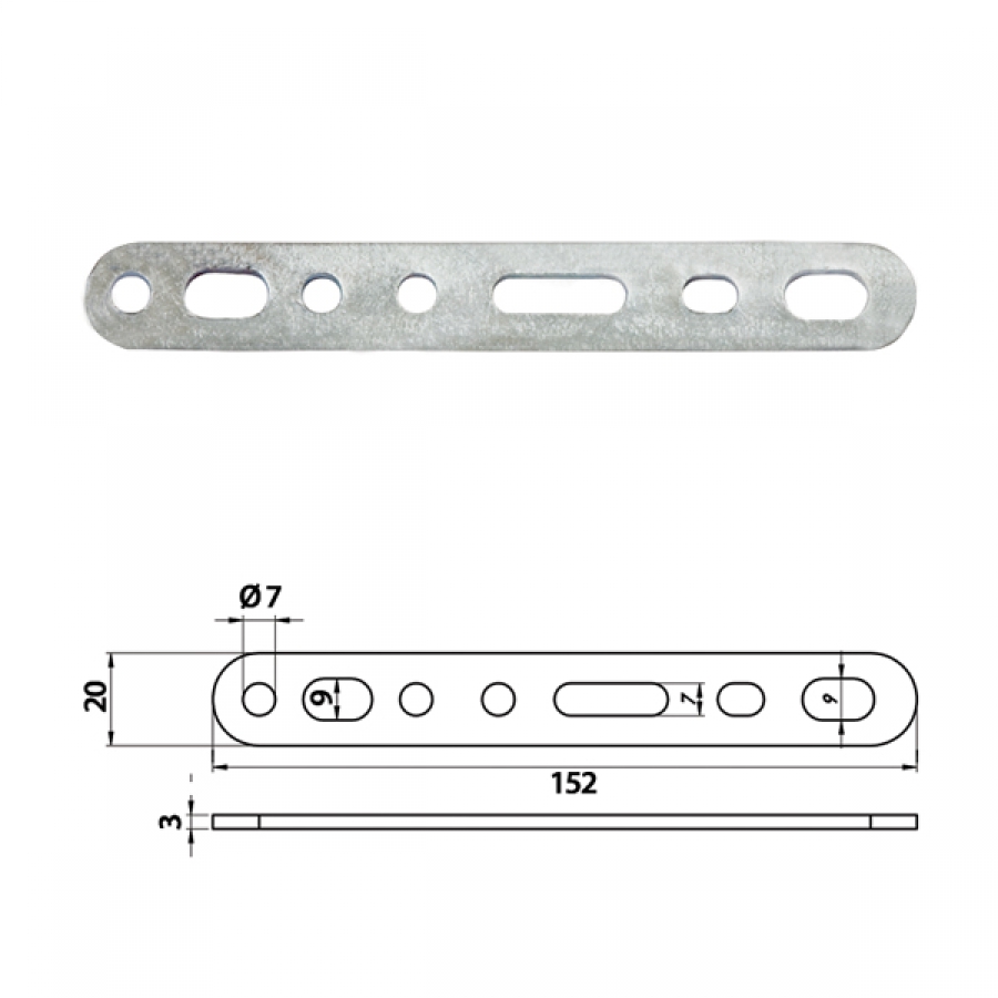 Кронштейн стальной 152 x 18 x 3,00 mm