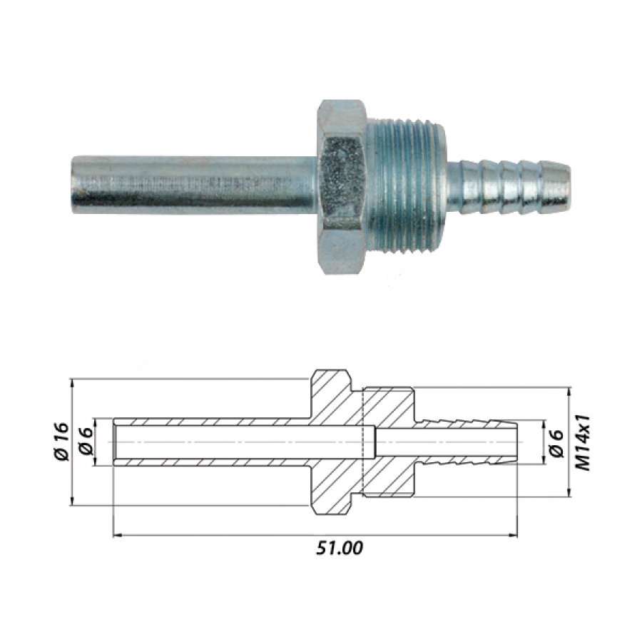 Штуцер для термопластиковой трубки Ø6-M14x1-Ø6