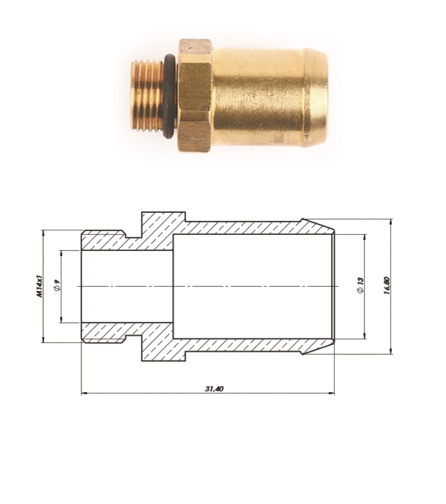 Переходник с уплотнительным кольцом M14 - Ø16