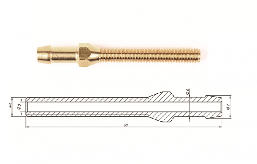 Штуцер впускного коллектора М6/ Ø6 60mm