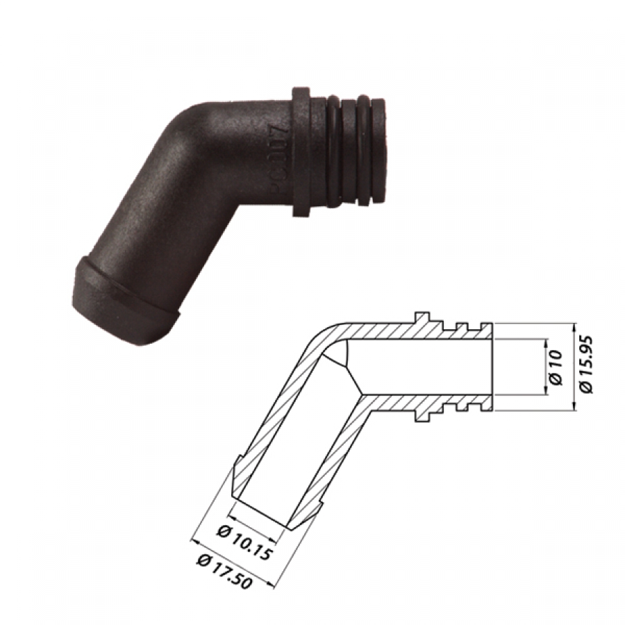 Тосольное колено для редуктора с уплотнительным кольцом Ø16