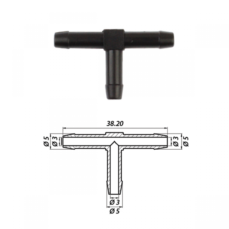 Тройник т-образный вакуумный Ø5 x Ø5 x Ø5 пластик